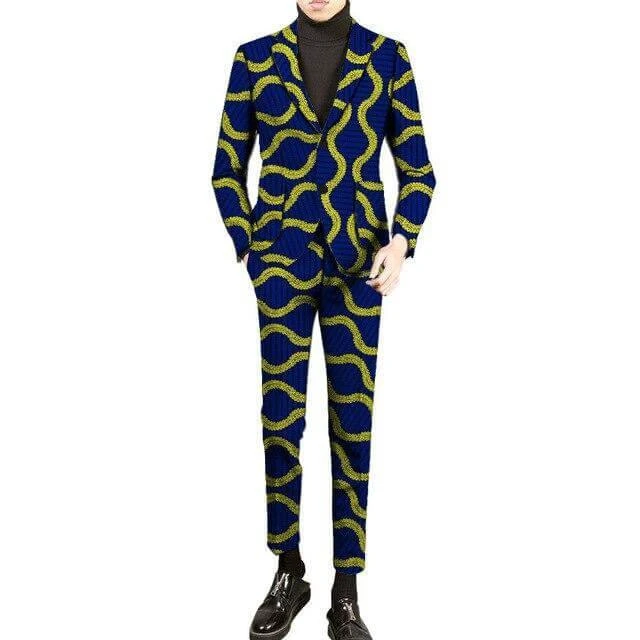 – available in an array of African prints, styles, and fits! Our Slim Fit African Suit boasts a single-breasted construction with long sleeves and V-neck, perfect for all seasons and any occasion. Whether you’re looking for 2-piece suits for your wedding, dashing dashikis for your next party, or classic African outfits, this African suit is a must-have.