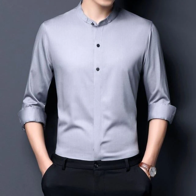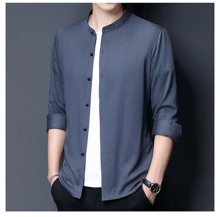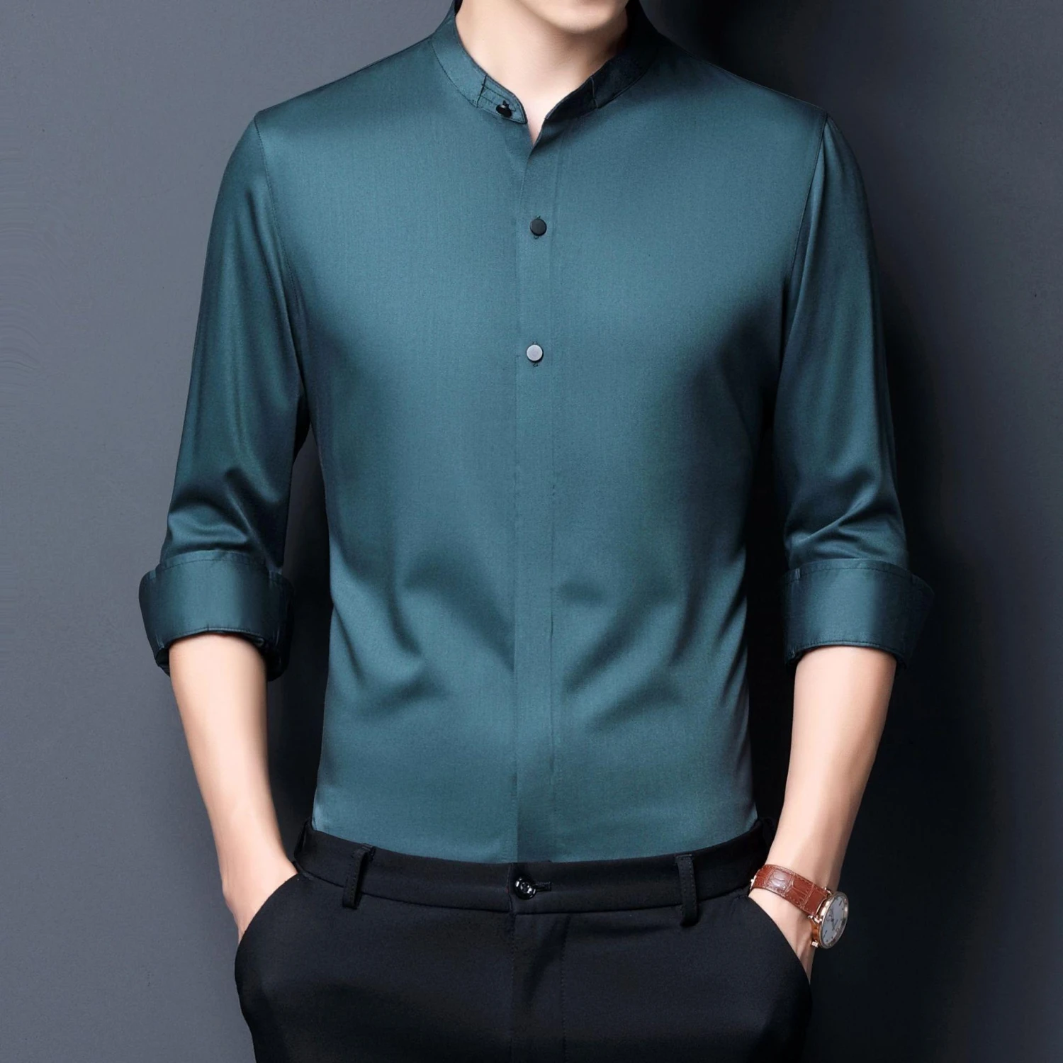 Experience the ultimate in style and comfort with our Clapton Satin Shirt For Men. Made from luxurious Tencel material, this smart casual shirt features a Mandarin collar and solid pattern for a sleek and modern look. Perfect for any casual occasion, this shirt will elevate your wardrobe to new heights.