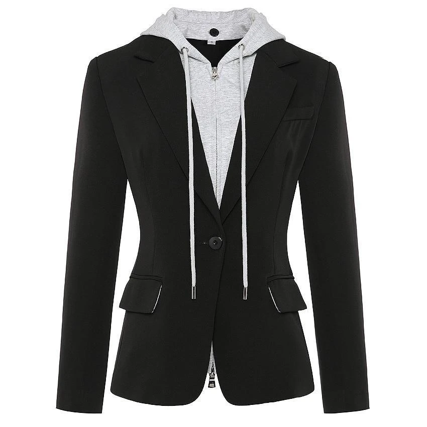 Looking for a stylish and comfortable blazer that can be worn casually or for work? Choose this women’s blazer for a chic look that is made from top-quality materials. This blazer features a cool detachable hood and stylish button closure.