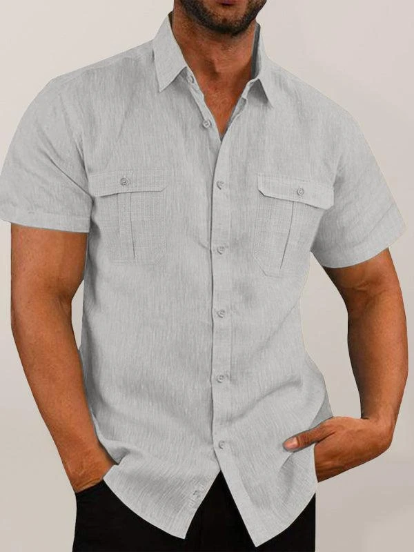Experience the perfect fit with this Double-Pocket Summer Shirt for Men. Made from high-quality polyester, this shirt features a solid pattern and is perfect for the spring and summer seasons. Its casual style and short sleeves make it a must-have addition to your wardrobe. Embrace comfort and style with this incredible shirt! SIZE CHART