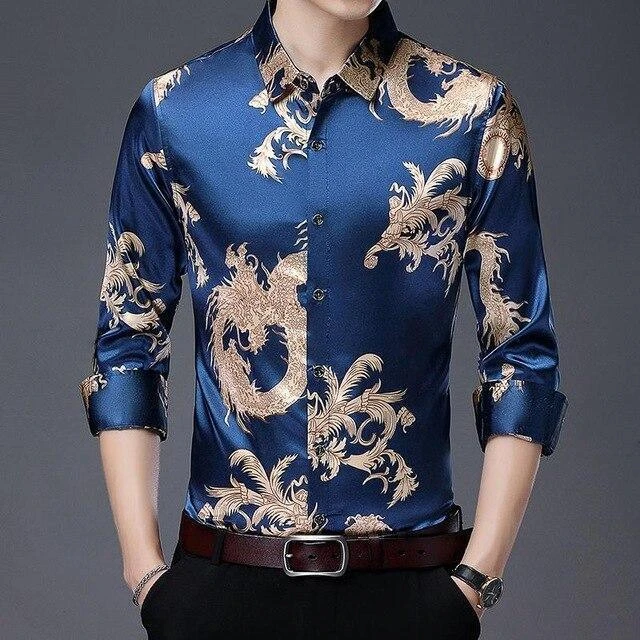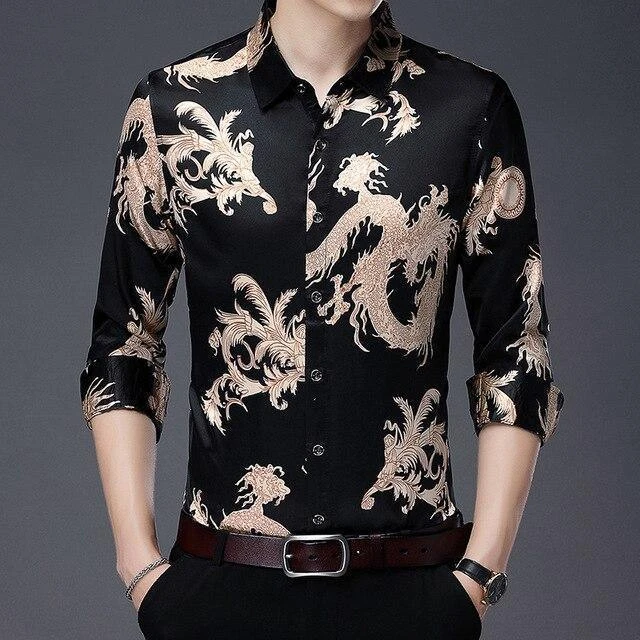Experience the luxurious feel and impressive style of our Dragon Print Men Satin Silk Shirt, available at LeStyleParfait! Elevate your wardrobe with this statement silk shirt that combines quality craftsmanship and striking dragon print design. Perfect for any occasion, this shirt will make you stand out and exude confidence. Don’t miss out on owning this must-have addition to your collection. Shop now at LeStyleParfait!