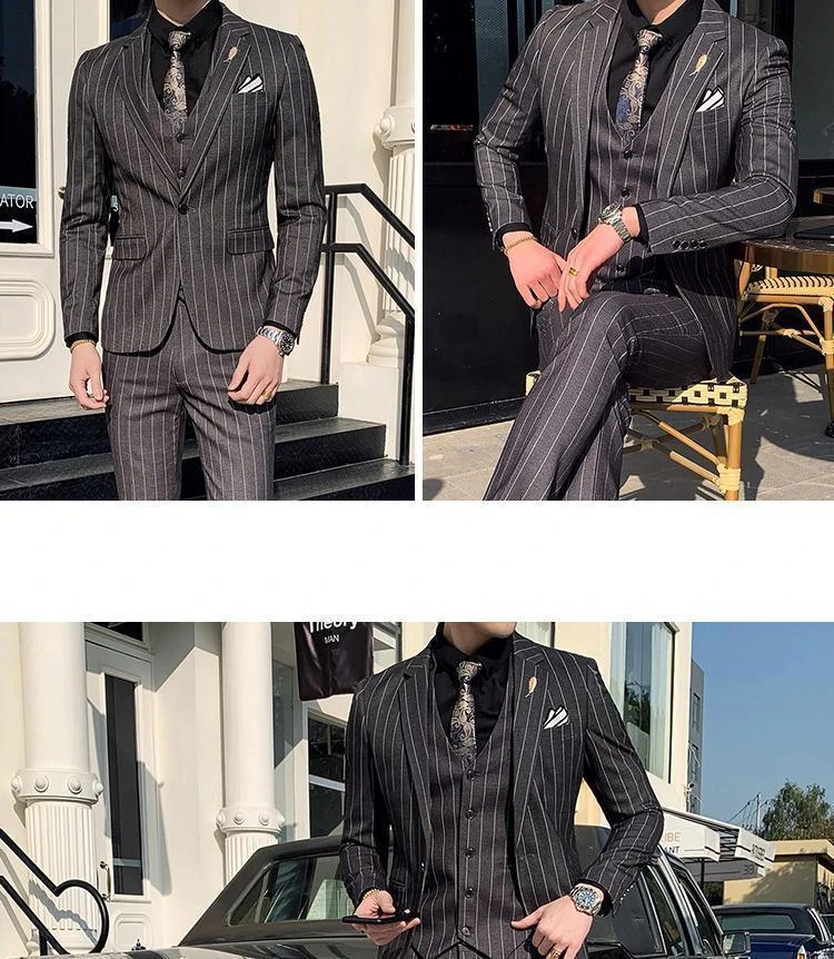 Discover the classic sophistication of our Formal Striped Three Piece Suit! Crafted from luxurious cotton, this timeless suit is perfect for any formal gathering. Featuring a slim fit, double-breasted design, long sleeves, and a V-neck, this standout piece is sure to make an impact! Get ready to turn heads with our 3-Piece Suit, Striped-Pinstriped, and Striped Suits. At LeStyleParfait