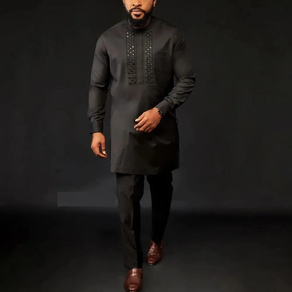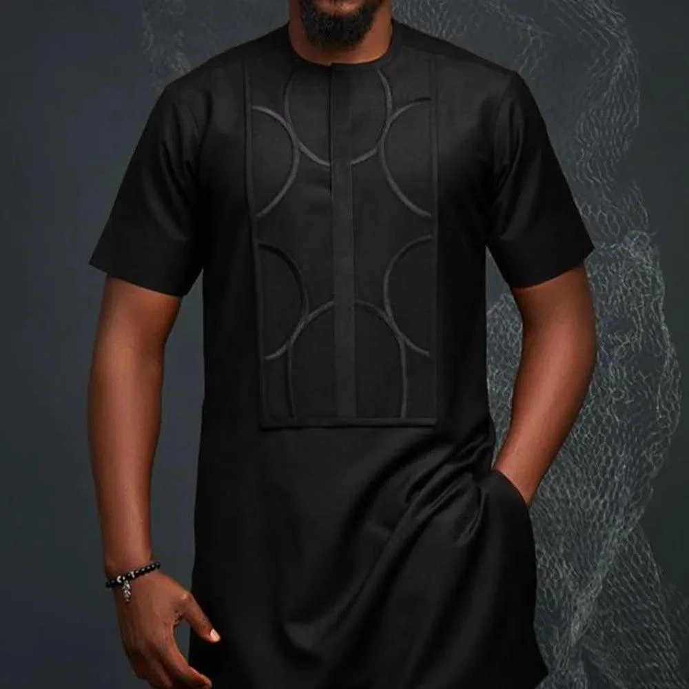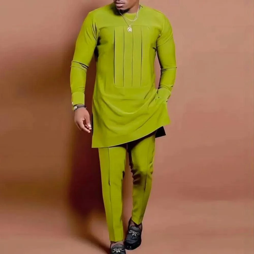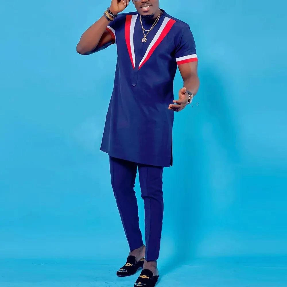 Look the part this summer with this African men’s clothing set. Made of cotton blends, this set includes a stylish O-neck shirt with floral pattern and pocket detailing, and a pair of drawstring pants. Perfect for summer weddings and parties, it’ll keep you comfortable and looking sharp. Enhance your look and feel with this summer-ready business set. Cool, comfortable, and stylish, you’ll be the sharpest in any crowd. If you’re looking to make an impression, this men’s clothing set is the perfect choice.