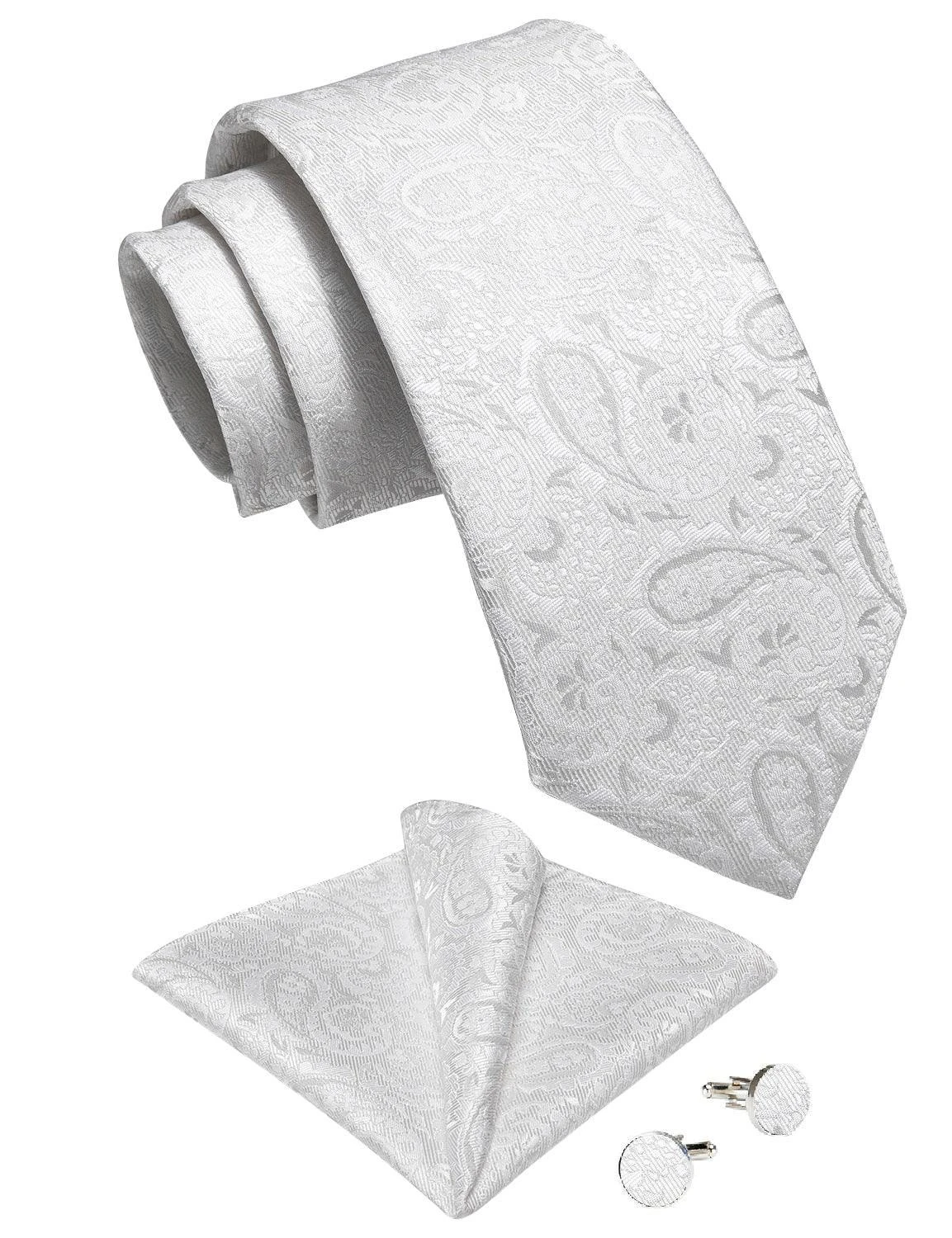 - Includes:Necktie, Handkerchief, and Cufflinks