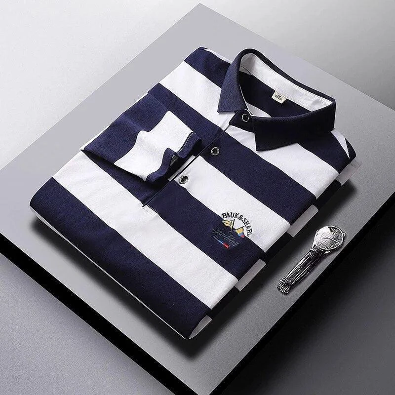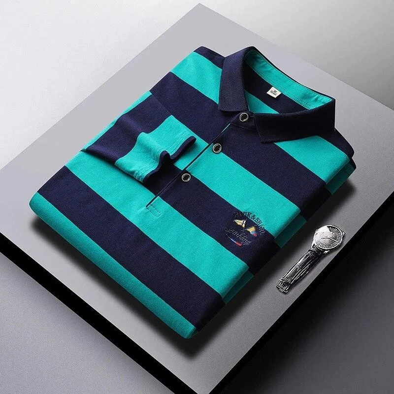 Enjoy all the compliments in this stylish Men’s Cotton Long-Sleeved Embroidered Striped Polo Shirt! The perfect combination of comfort, sophistication, and style, this piece will make your spring wardrobe stand out. Quick-drying, lightweight, and ready for any occasion, this eye-catching polo will keep you looking and feeling your best. Make a statement and be the talk of the town!