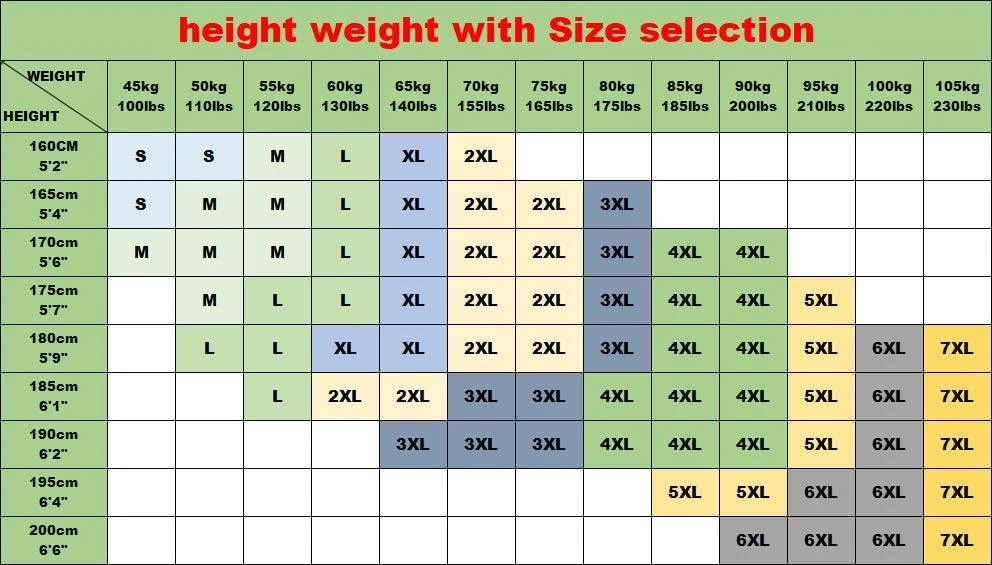 | Size | M 45 to 50 kg, L 51 to 58 kg, XL 59 to 65 kg, 2XL 66 to 72 kg, 3XL 73 to 80 kg, 4XL 81 to 90 kg |