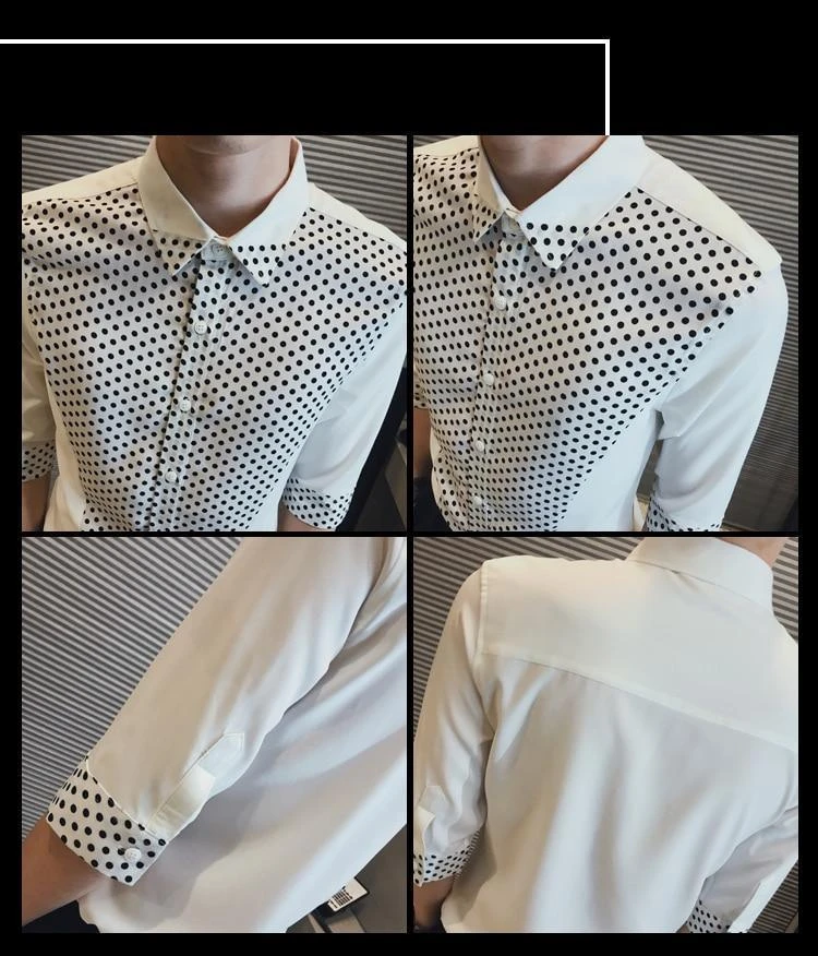 This casual shirt for men is the perfect addition to your wardrobe, made with a blend of spandex and polyester for ultimate comfort and flexibility. The trendy polka dot pattern and half-length sleeves add a touch of playful style, while the turn-down collar gives it a casual and easy-going look. Ideal for any casual occasion, this shirt is a must-have for any man who values comfort and style.