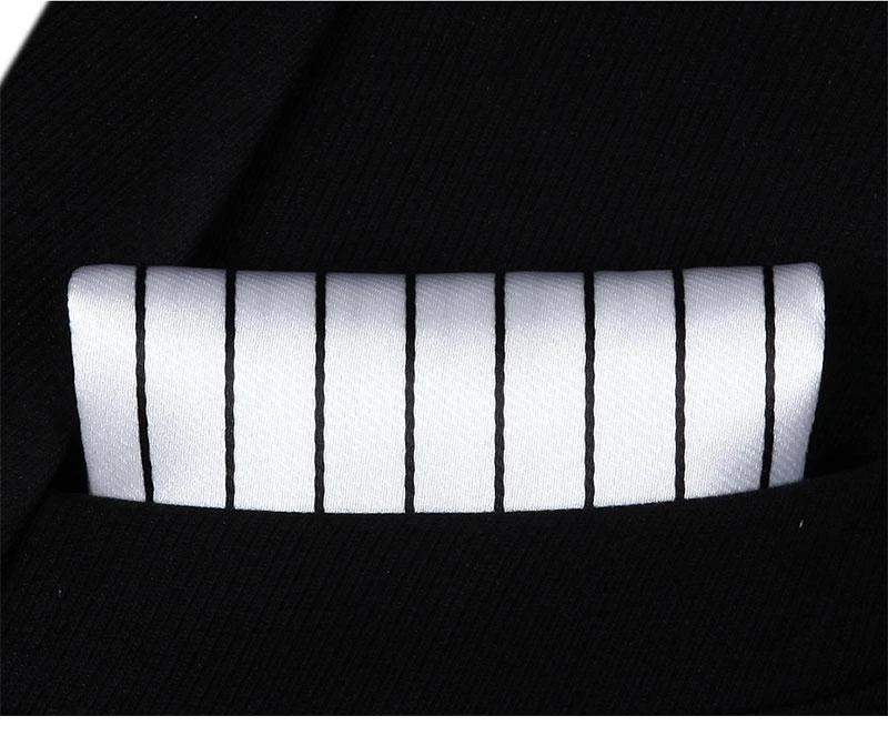 Elegant Striped Necktie Handkerchief Setwhite striped necktie and matching pocket handkerchief for men.