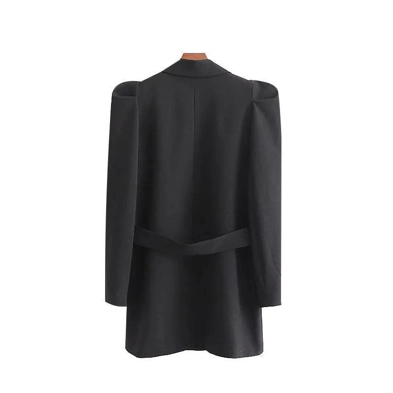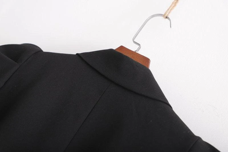 This elegant and distinctive vintage long blazer for women is a stylish addition to any lady’s wardrobe. The simple yet stylish design features a notch collar with full-length sleeves. The tailored fit is perfect for women who prefer a style that is feminine and refined. Featuring a feminine and elegant double-breasted style, this long blazer is available in black color.