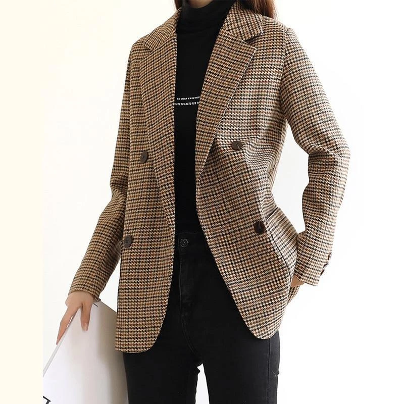 Discover timeless style with the Vintage Houndstooth Plaid Blazer Women – Vintage – Plaid blazer from LeStyleParfait! Perfect for a classic yet modern look, this blazer stands out with its vintage plaid pattern and flattering fit. Get ready to wow with this eye-catching piece!