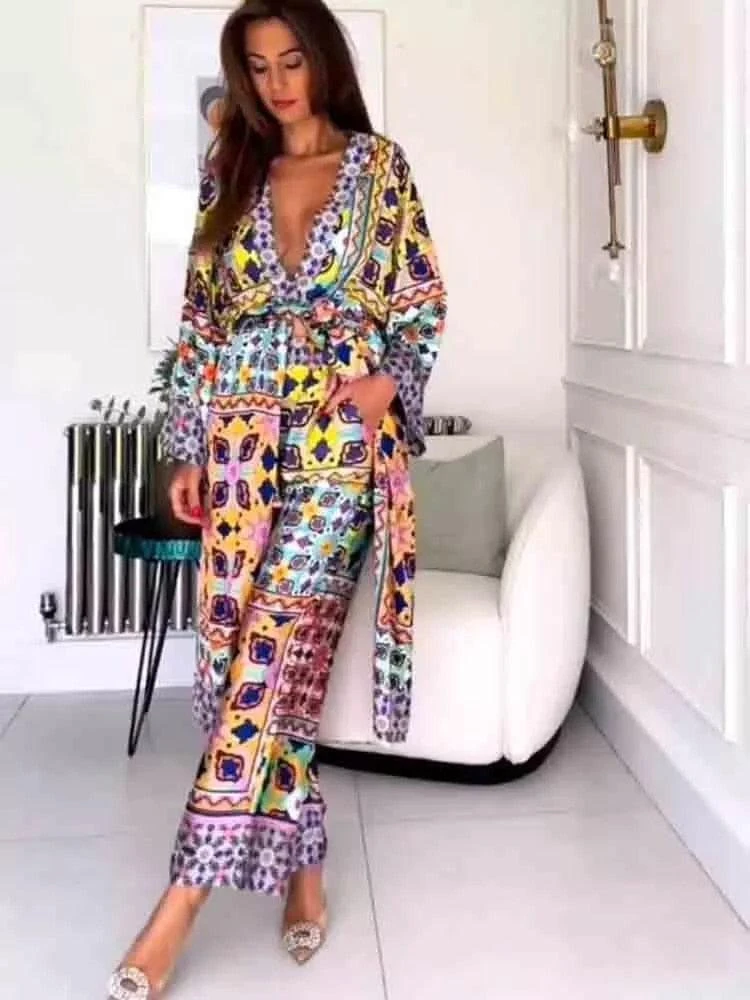 This outfit set is crafted with a luxury silk-satin blend, giving you a smooth and comfortable fit that looks as good as it feels. With its relaxed ankle-length pants and turn-down collar, it’s a stylish, easy-to-wear option for the cooler months.